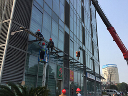 綠地鉑驪酒店幕墻玻璃更換施工現(xiàn)場(chǎng)照。
