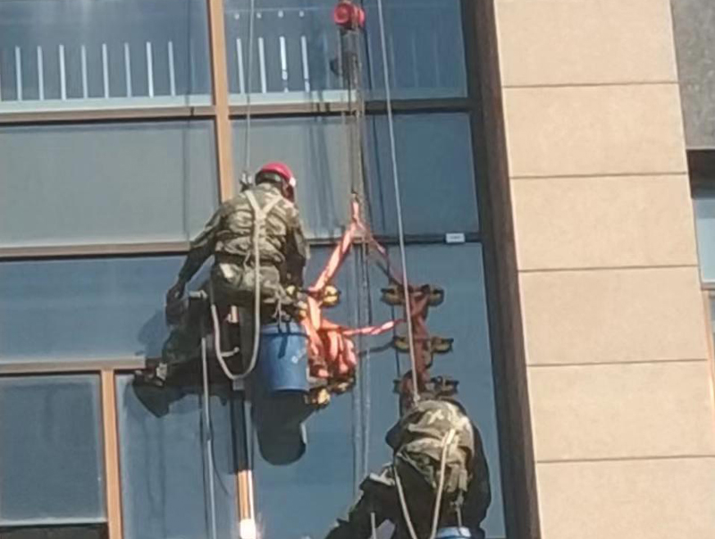 • 奉賢區檢測中心幕墻玻璃更換施工現場照。